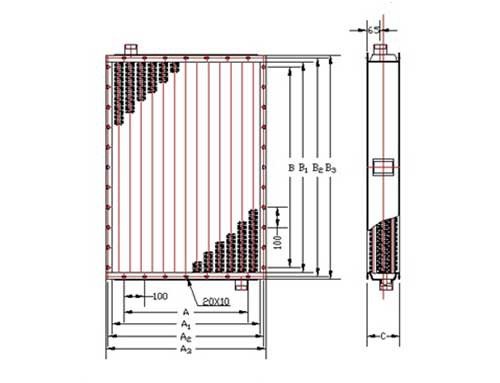 舉例:SRL12×5/3表示:表面長1250mm,寬545mm,由3排散熱管組成。